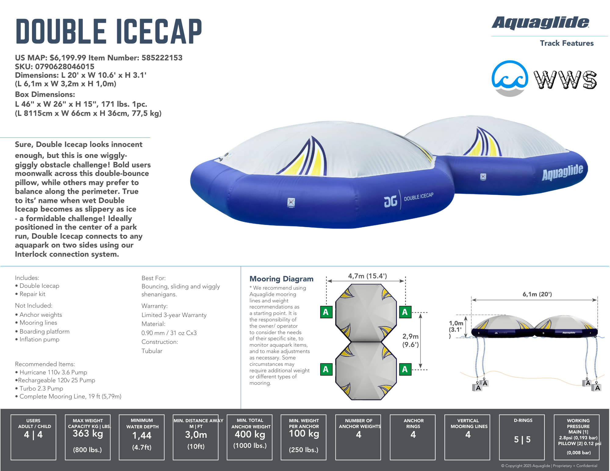 True to its' name when wet Double Icecap becomes as slippery as ice - a formidable challenge! Ideally positioned in the center of a park run, Double Icecap connects to any aquapark on two sides using our Interlock connection system.