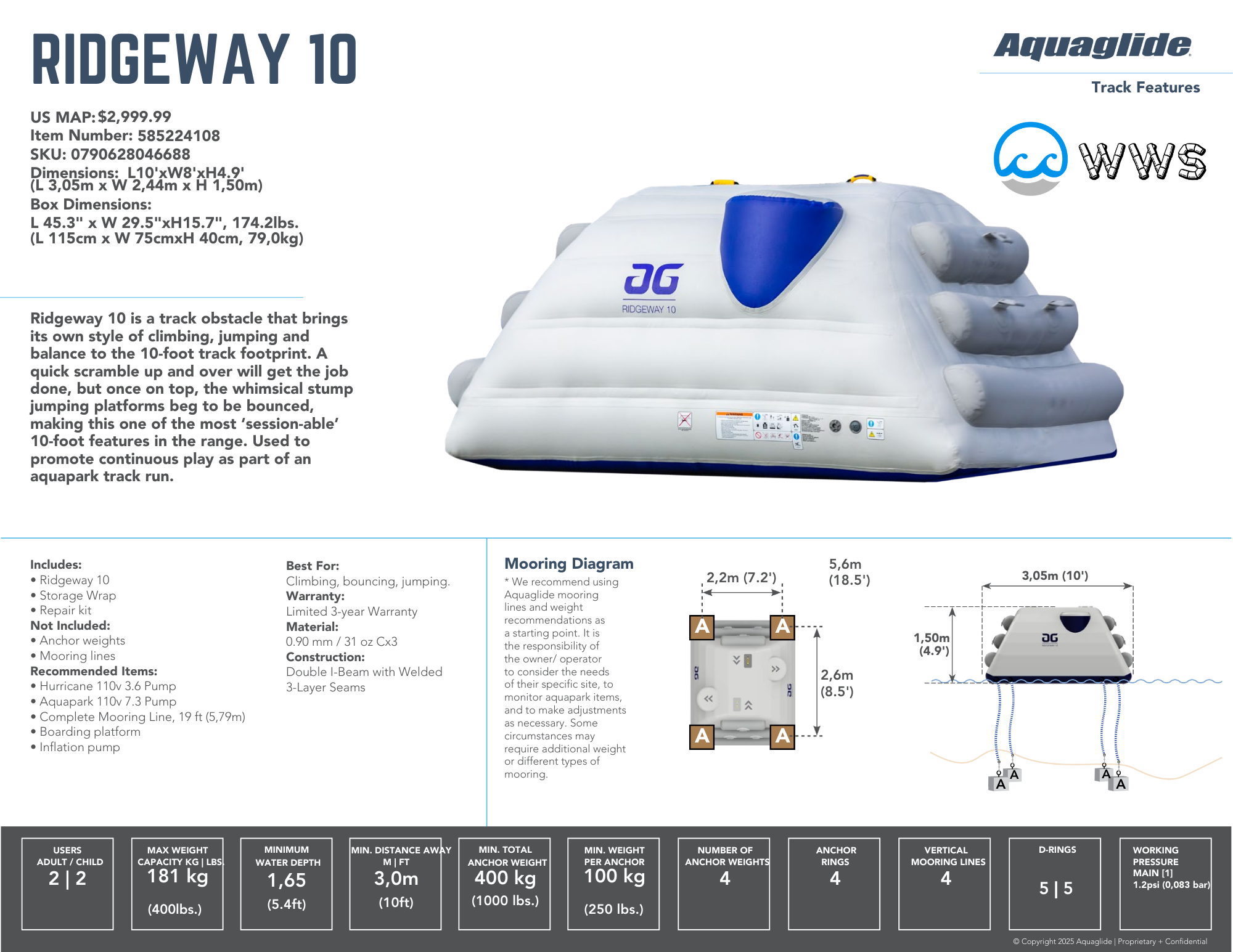 10-foot features in the range. Used to promote continuous play as part of an aquapark track run.